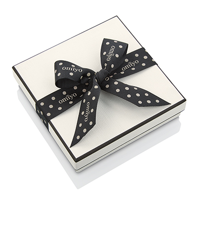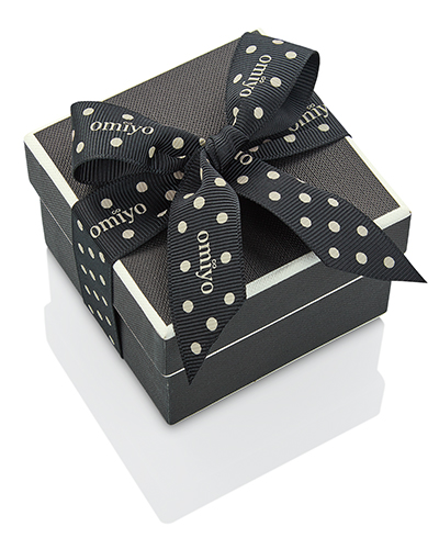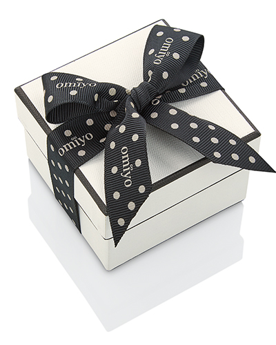 Expect your Omiyo jewellery to be housed in either our signature BLACK or our signature WHITE iconic gift box, sealed with one of our distinctive ribbon designs!