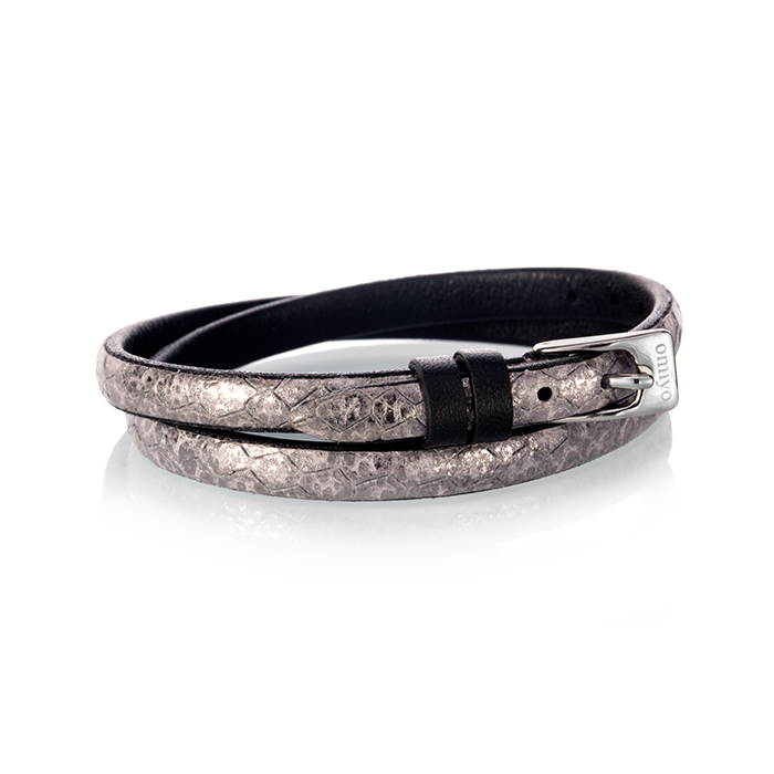 Glitz by Omiyo is a distinctive luxurious hand-crafted dual contrasting genuine leather bracelet that naturally curls into a double loop forming a fashion statement around your wrist and fastened by an adjustable buckle.